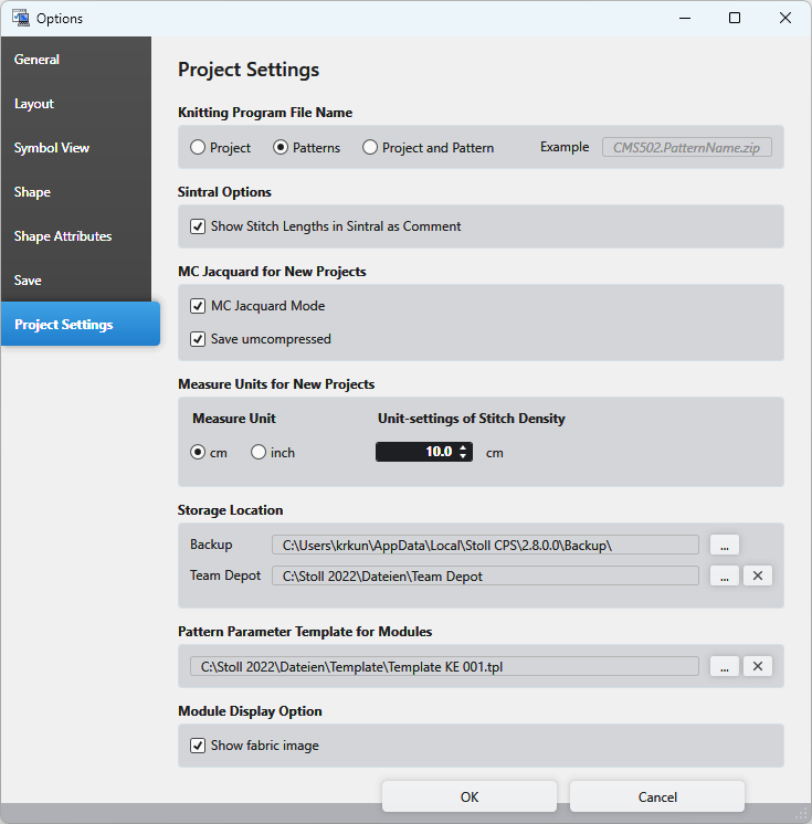 Select the path to a network or cloud folder on which the knitting elements are saved.