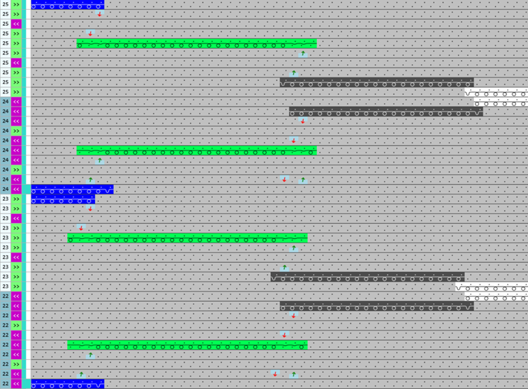 : Un Color Arrangement solo es necesario para esta situación, cuando el ligamento de Intarsia no está disponible como elemento de tisaje 'Módulo de técnica' en Knit Explorer.