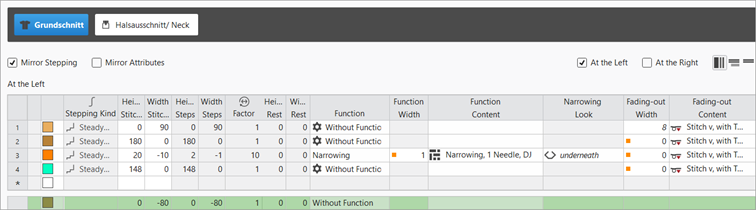 : This setting also has an effect on the neckline shape element, i.e. the V-neck shape element starts with 1 needle. - 12
