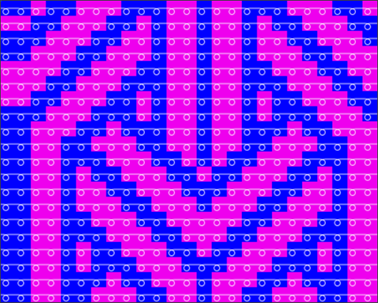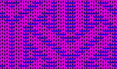 - Draw-in the needle actions for the structure and transferring into the color segments of the yarn colors #6 (pink) and #3 (blue).