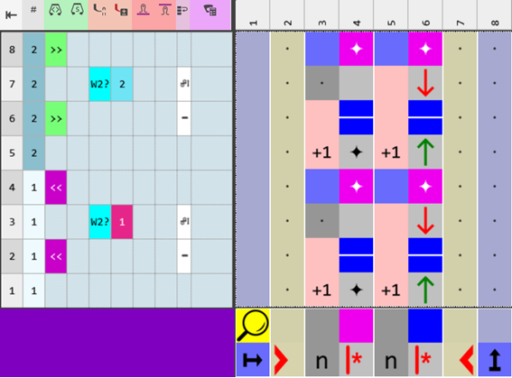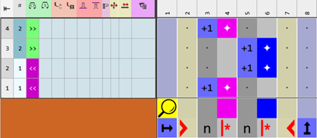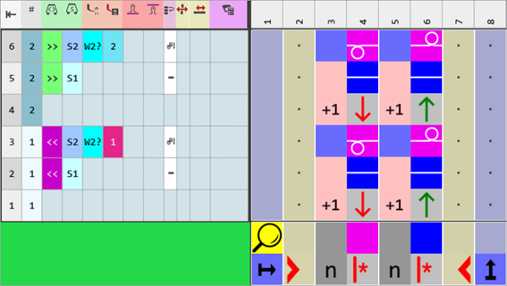 button in the ribbon. - The Color Arrangement Editor appears with the original standard knitting process of the 2 pattern rows.