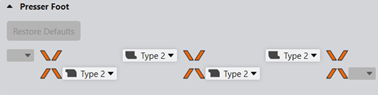 Seleccionar la máquina dialog box graphically displays the position and the set type of weft yarn presser foot.