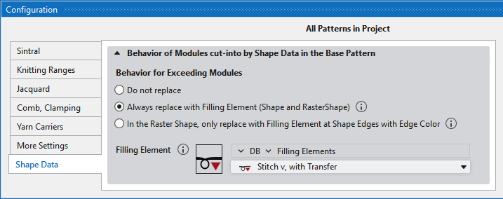The exceeding modules will be replaced by the selected filling element in the raster-shape only at shape edges with edge color.