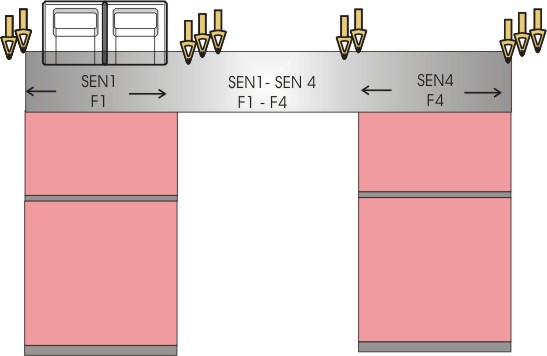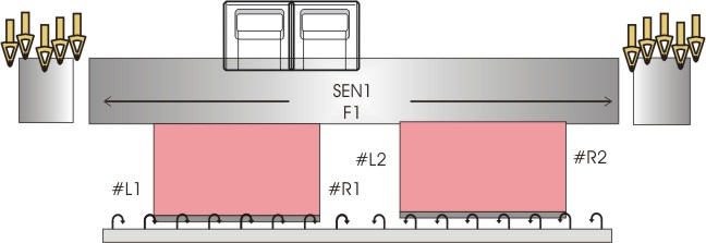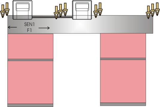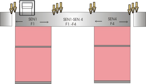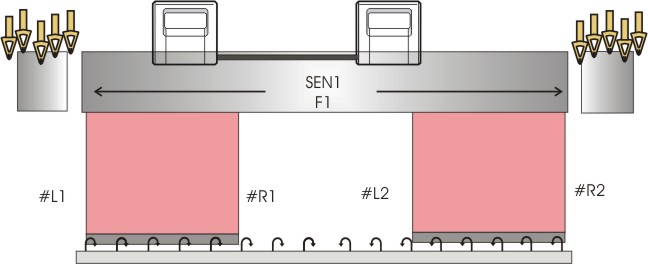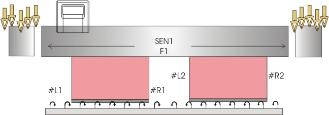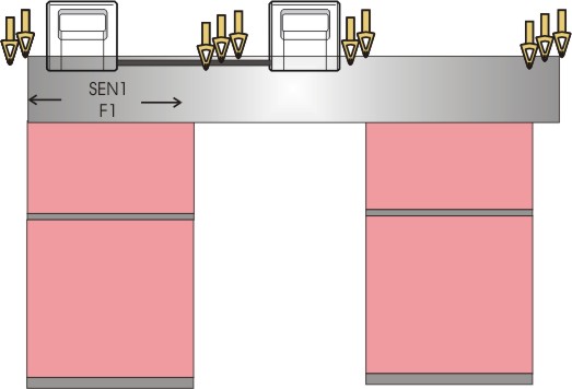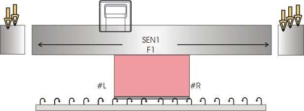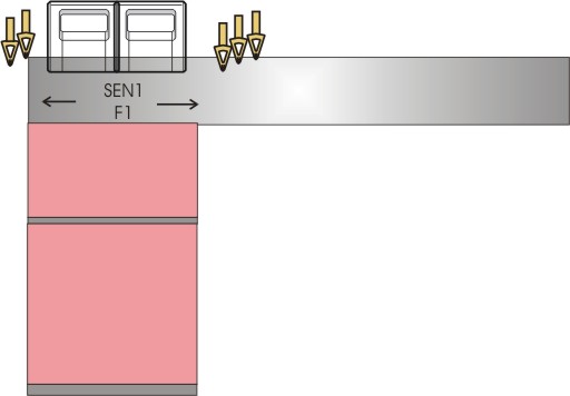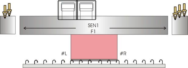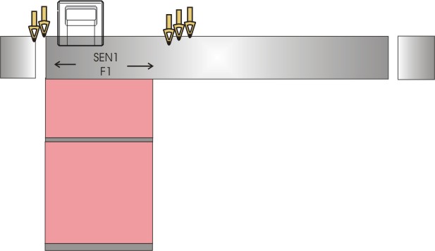 - In the Sectores de tisaje section below Posición de inicio de SEN1, make the desired setting for positioning the fabric pieces in the needle bed.