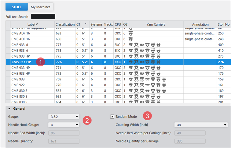 - 1 to 4 fabric pieces are possible depending on the knitting width per fabric piece and the quantity of yarn carriers