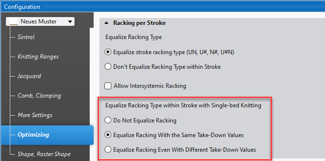 Settings for new projects in Opciones / Configuración del proyecto / MC jacquard para nuevos proyectos