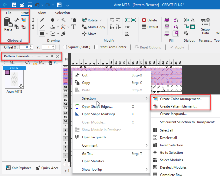 Create Pattern Element | Creates a pattern element with the text and saves it to the Pattern Element tool window.