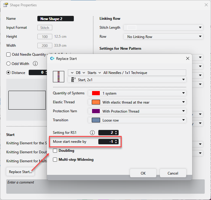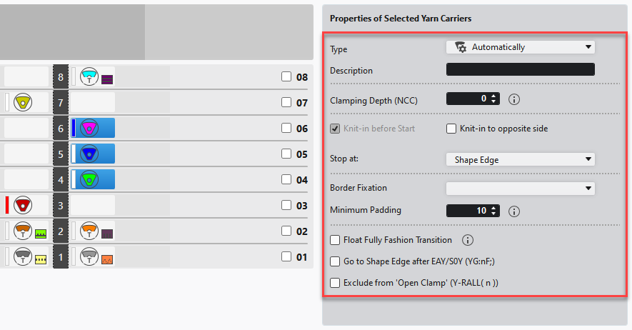 4 | Bind-off Step The width of the bind-off step is specified via the line properties. The total bind-off width is calculated and determined by the factor. |