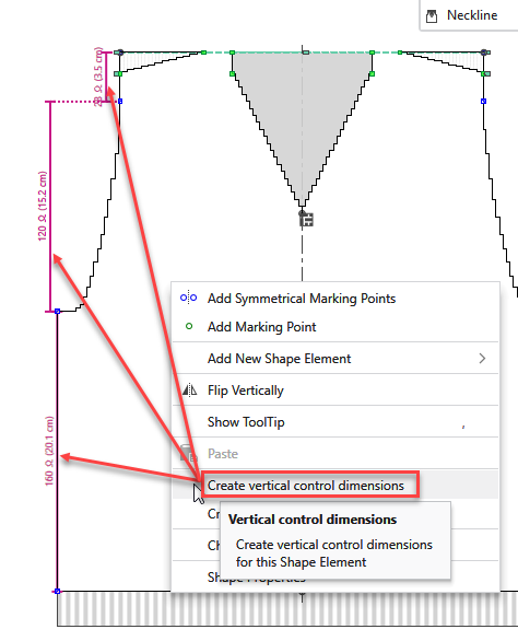 - Crea los dimensionamientos de control vertical para este elemento de corte.