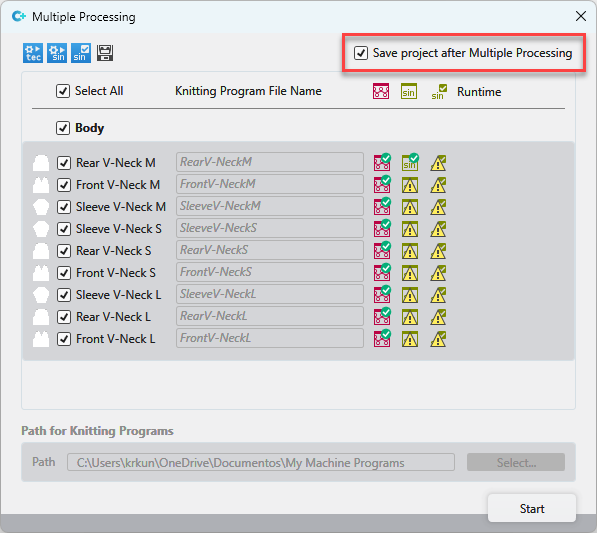 The total project will be saved after each Multiple Processing despite the settings in the dialog box.
