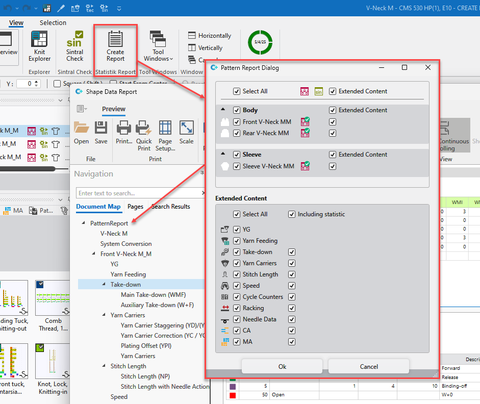 Select the desired data for the Pattern Report in the lower part of the dialog box.