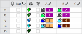 - In the tool window, enter the yarn colors used for area 1 in row P1 under columns A and B.