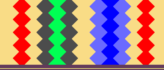 - Area 1 (left): Yarn color #2 and yarn color #4