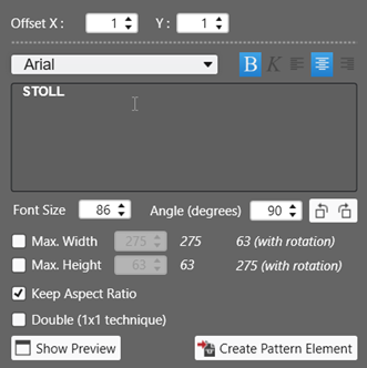 - Select the total height of the design pattern in the Pasada de muestra control column.