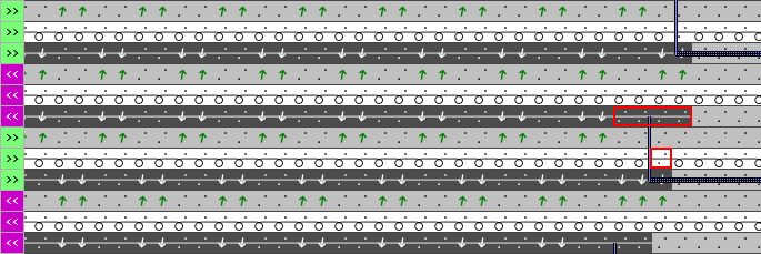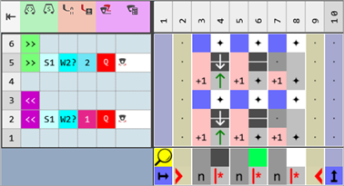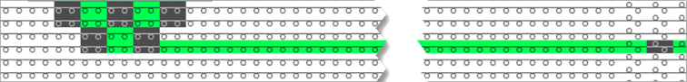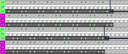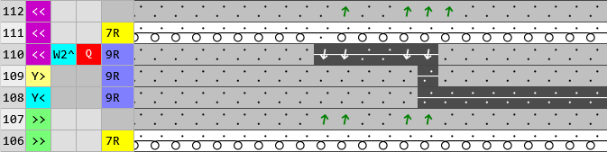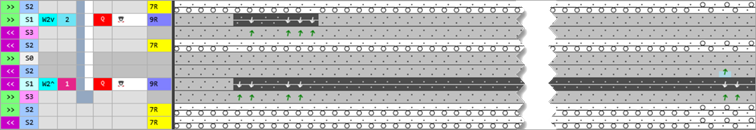 - Add additional rows for the weft yarn and draw in the yarn color used in pattern section 1 with the desired needle actions.