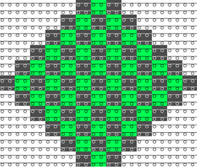 - Yarn color #4 (green) from the pattern border up to the start of the area with selective weft yarn (rear weft yarn)