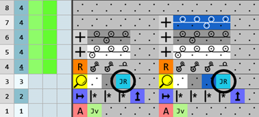 : Das Symbol [JR] Relieve de Jacquard aus der Registerkarte Control zusammen mit einer Definitionsfarbe definiert in einer Kachel die Farbe, welche durch die verwendete Nadelaktion