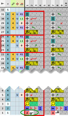 - Strickelemente werden entsprechend der Schlittenrichtung eingetragen.