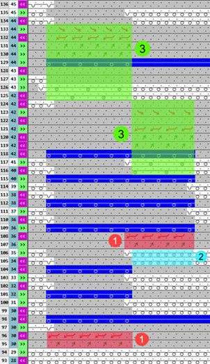 : In diesen Unterverzeichnissen befinden sich die Strickelemente für die entsprechenden Übergänge für Anfang, Rand und Ende eines Bereiches mit der Stricktechnik Multi Gauge.
