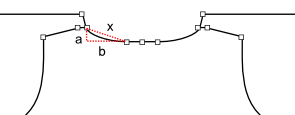 b = ([Anchura de escote según cálculo]-[Anchura de desprendimiento en el escote anterior])/2