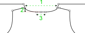 [Media anchura de cuello delante] = √([Profundidad de escote anterior según cálculo]²+(([Anchura de escote según cálculo]-[Anchura de desprendimiento en el escote anterior])/2)²)+[Anchura de desprendimiento en el escote anterior]/2-0.20 cm