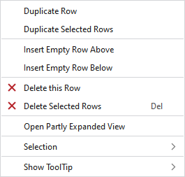 Duplicates the selected rows. |