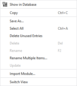 Context menu on the modules