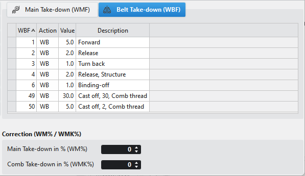 Changing the fabric take-down value by n percent while the comb take-down is working. The value is only active till the fabric is taken down by the main take-down.