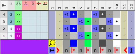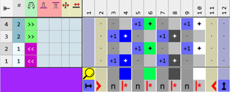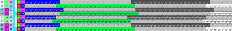 symbol (default entry) repeats the needle action from the source row in the entire color area from the left to the right