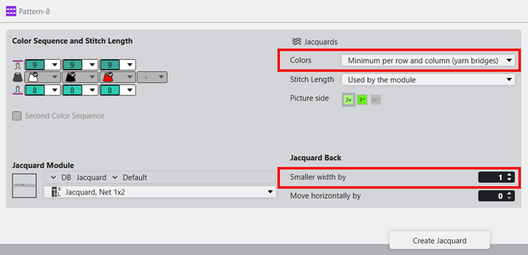 - Under the Transition jacquard -> Jacquard intarsia section, make the desired settings.
