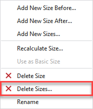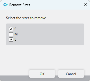Select the sizes to be removed in the Supprimer tailles dialog box.