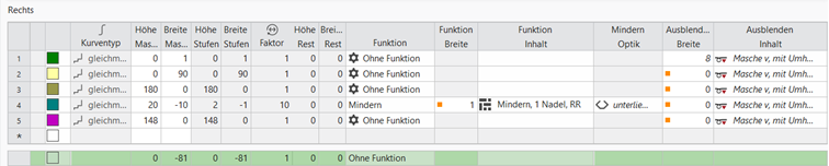 : This setting also has an effect on the neckline shape element, i.e. the V-neck shape element starts with 1 needle. - 12