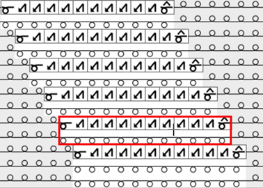 - Then, select the knitting element Pétinet, maille bouche-trou v <= to draw from the