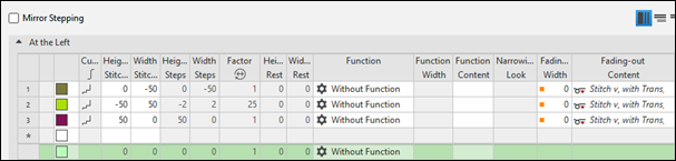 Allocate Multi-step Widening to shape line no. 2 under Funzione.
