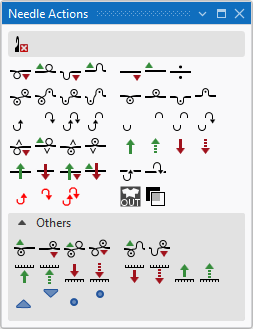 In the Azioni dell'ago tool window select the needle actions to draw.