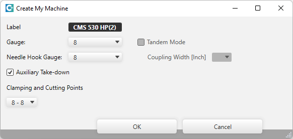 In the Crea macchina propria context menu on the entries of the STOLL database you open the Crea macchine proprie dialog box.