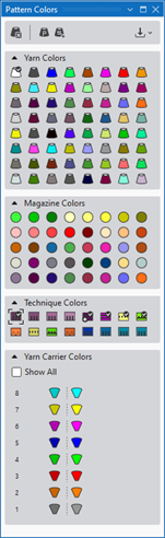 1. Il disegno base viene riprodotto in Colori del filato/Colori del magazzino/Colori dei guidafili.