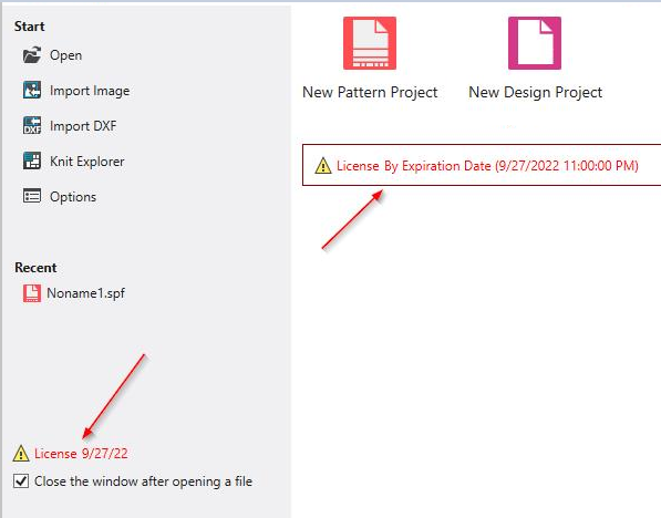 An expiring license is clearly indicated before reaching the critical time.
