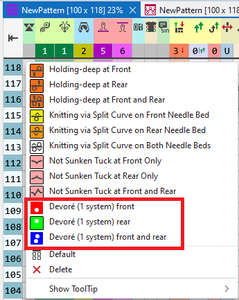 For example, if different parameters are to be assigned to a yarn carrier. When creating a color arrangement with an sub-color in the pattern, manual reworking was always necessary.