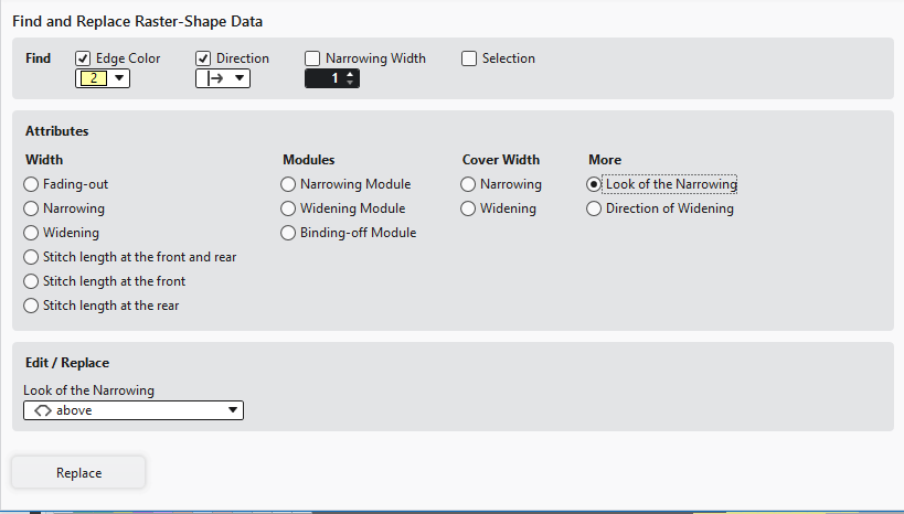 Meaning that only shape attributes (shape edge or shape mark) are opened in the Raster Shape view. If foreground and background are shown in pattern color, then only an existing CA will be opened. - Deleting needle actions selectively