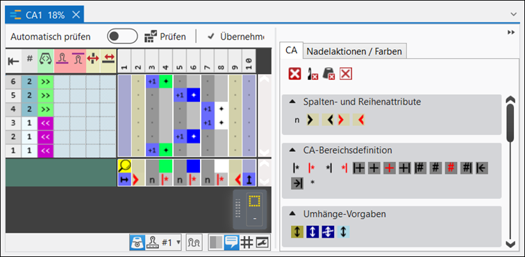 Nell'editor, con gli strumenti per Color Arrangement dalle schede CA e/o Azioni dell'ago / colori procedere alle modifiche desiderate.