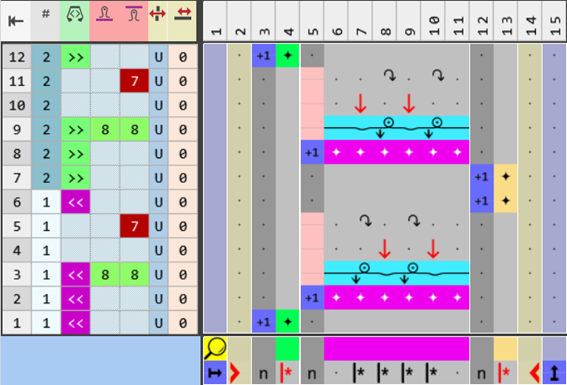 - Draw the desired structure for working with the additional yarn carrier and the edge of the color field in the color segment of the yarn color #6 (pink) in the 'Processing Area':