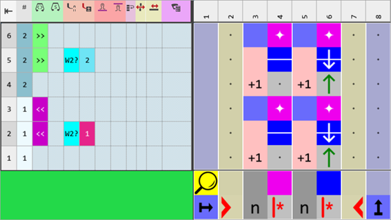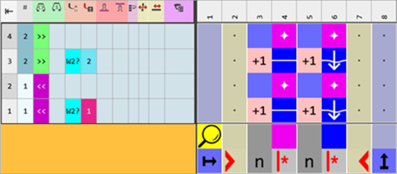 button in the ribbon. - The Color Arrangement Editor appears with the original standard knitting process of the 2 pattern rows.