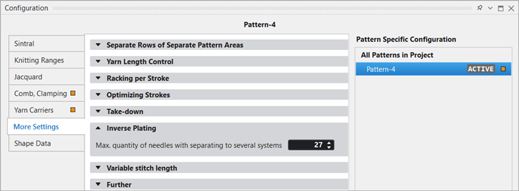 : The exchange of yarn colors in the Colori vanisé tab determines the change (inverse plating) of the yarn carriers.