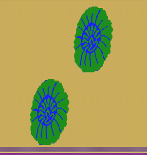 Several yarn carriers are used within on area with selective plating. Meaning all yarn carriers has to be placed optimally to knitting rows during knitting. This requests a border processing / correction of the motif.