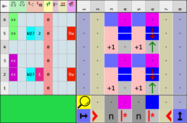 Beispiel 2: Color Arrangement für Struktur mit Schussfaden und Schuss-Einstreifer für die Verwendung eines Schussfadenführers Qw erstellen: