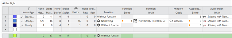: This setting also has an effect on the neckline shape element, i.e. the V-neck shape element starts with 1 needle. - 12