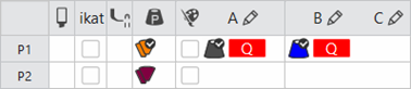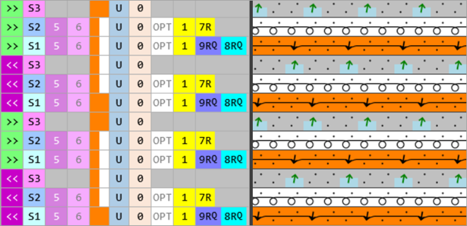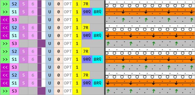 - In the technique rows 2 + 5, overwrite the entered yarn color with the plating color P1.