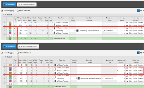 Kesimler tool window. - In the tool window, the existing shapes of the pattern project are displayed.