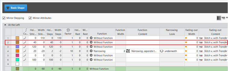 - Insert new shape lines in the table and enter the desired values for the basic shape.